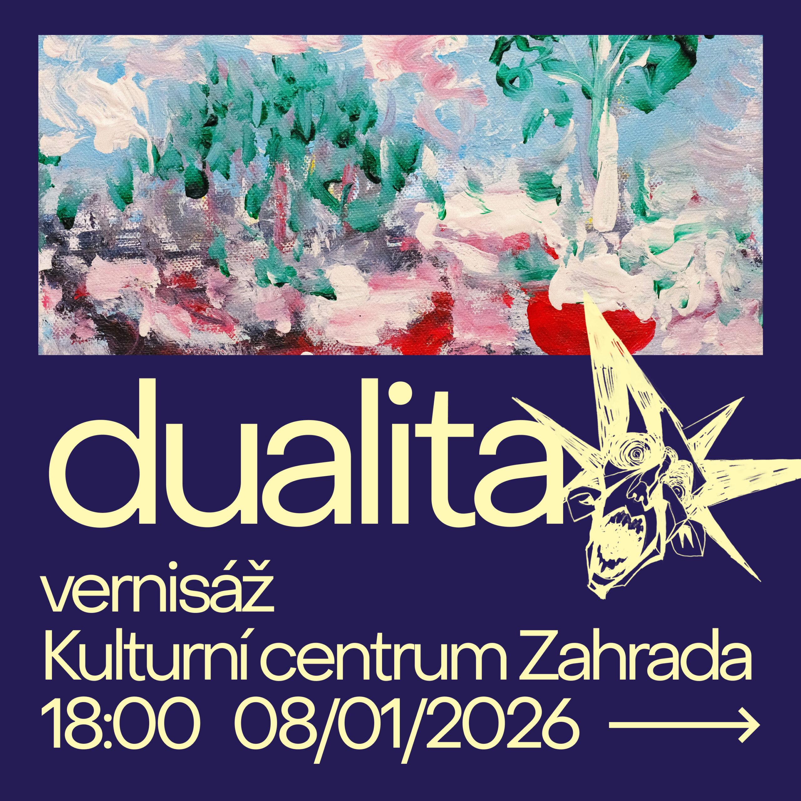 Dualita prostupuje náš svět i vnitřní prožívání — mezi dobrem a zlem, světlem a temnotou, milostí a hněvem. Mladí umělci ve svých dílech zachycují oba póly lidské existence a zvou vás k zamyšlení, kde na této ose stojíte vy sami. Výstava otevírá prostor pro vnímání čistoty, touhy po dobru a hlubších vrstev našeho světa.