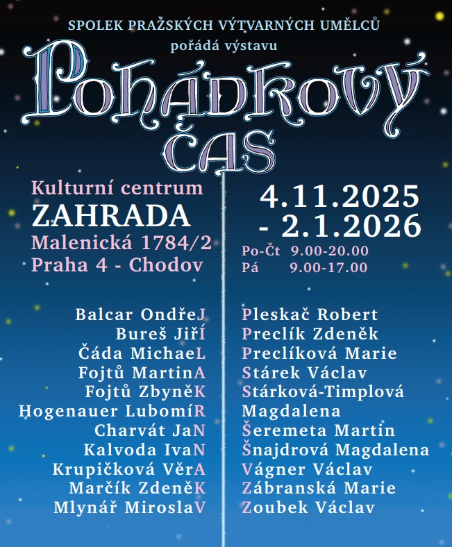 Všichni malíři, sochaři a grafici jsou tu na vysoké profesionální úrovni. Toto předvánoční období, je pro ně jistě velmi inspirativní. Je to čas, kdy se všichni již těší na pohádkovou krásu vánoc a naši umělci svými díly přispějí k pohodě a radosti dětí i dospělých.